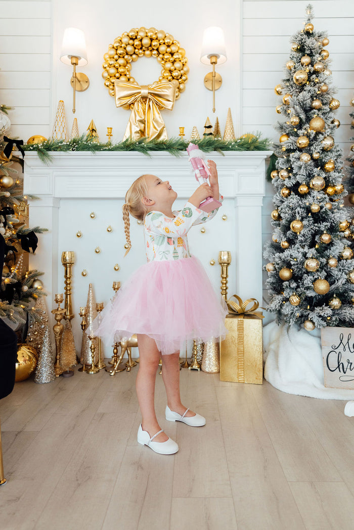The perfect dress for school programs, Christmas parties, and visits with Santa! Designed by a mom and a dad. Mom wanted something twirly, comfortable and easy to wash. Dad wanted something easy to get on his chubby, big headed toddler. Designed with a scoop back for quick on and off, and higher neckline for modesty. Pair with Twirl Shorts or Leggings for the perfect everyday outfit. Matching Twirl Bodysuit available for sister, cousin or BFF.