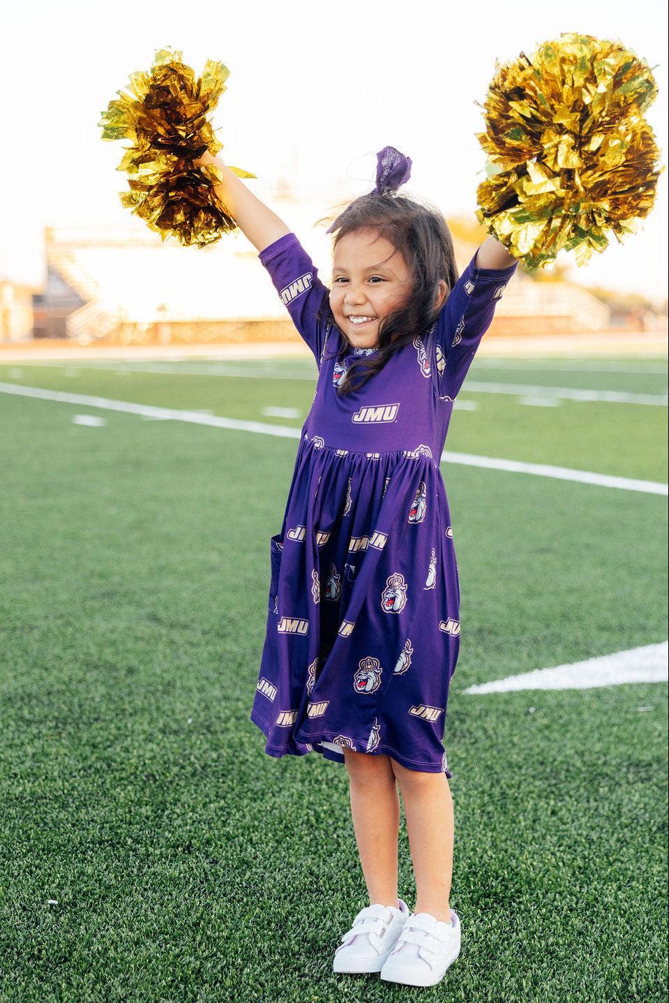 Let your little Duke show off her JMU pride with this spirited dress—perfect for game day, spirit day, or everyday play! This dress is made for young fans who love to cheer. Mix and match our James Madison University collection for a coordinated look with sisters, cousins, or BFFs!