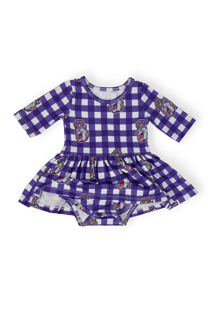 Let your little Duke show off her JMU pride with this spirited dress—perfect for game day, spirit day, or everyday play! This dress is made for young fans who love to cheer. Mix and match our James Madison University collection for a coordinated look with sisters, cousins, or BFFs!