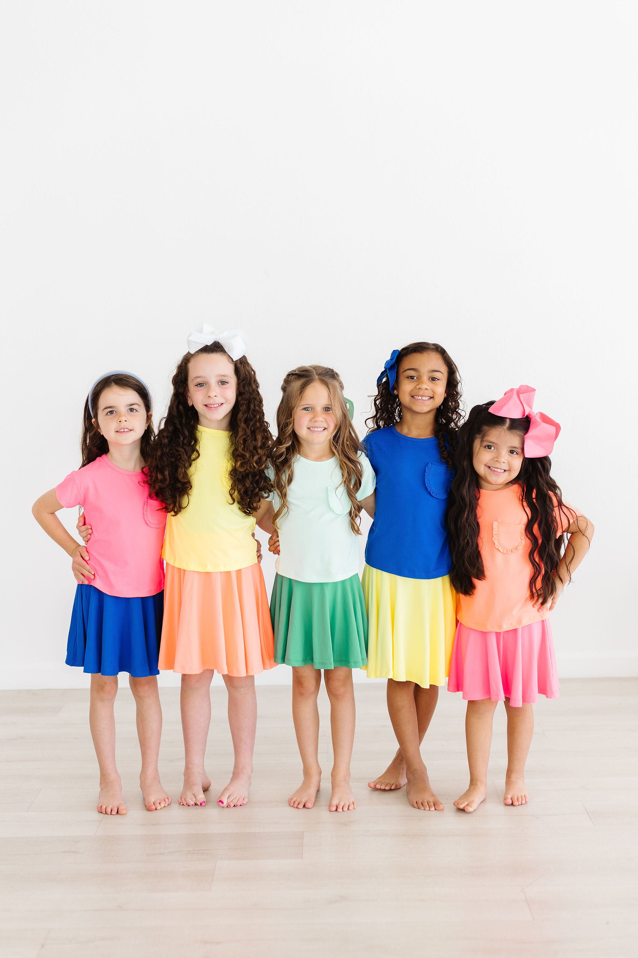 You asked, we listened! Our twirl skirts are back and better than ever, but this time with attached SHORTS. Flowy skirt is perfect for twirling, while the hidden attached shorts provide coverage with every twirl and cartwheel. Your little one will love this for school, playground, and everyday play.