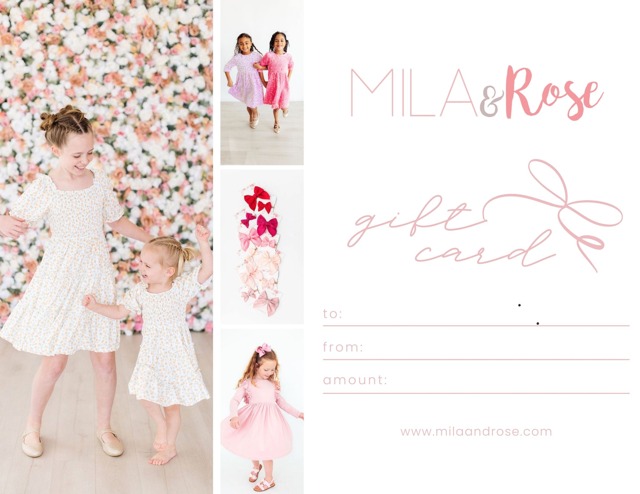 Send a Mila & Rose E-Gift Card to your favorite little! Perfect for holidays, birthdays and special occasions!